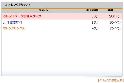 オレンジクリックスはポイントを使ってクリック保証広告を簡単に出すことが出来るアクセスアップツールです。