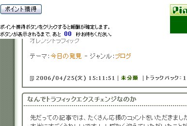 広告閲覧時間がゼロになると、ポイント獲得ボタンが出てきます。 このボタンをクリックするまではポイント獲得が確定していません。 |